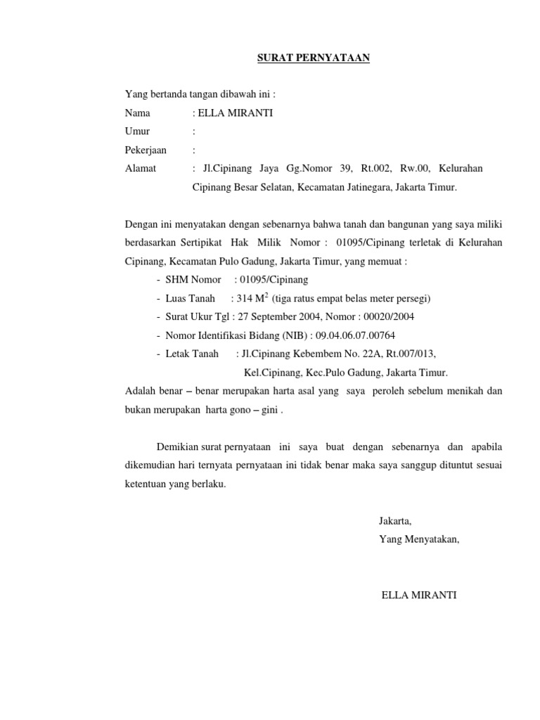 Pernyataan Bukan Harta Gono Gini