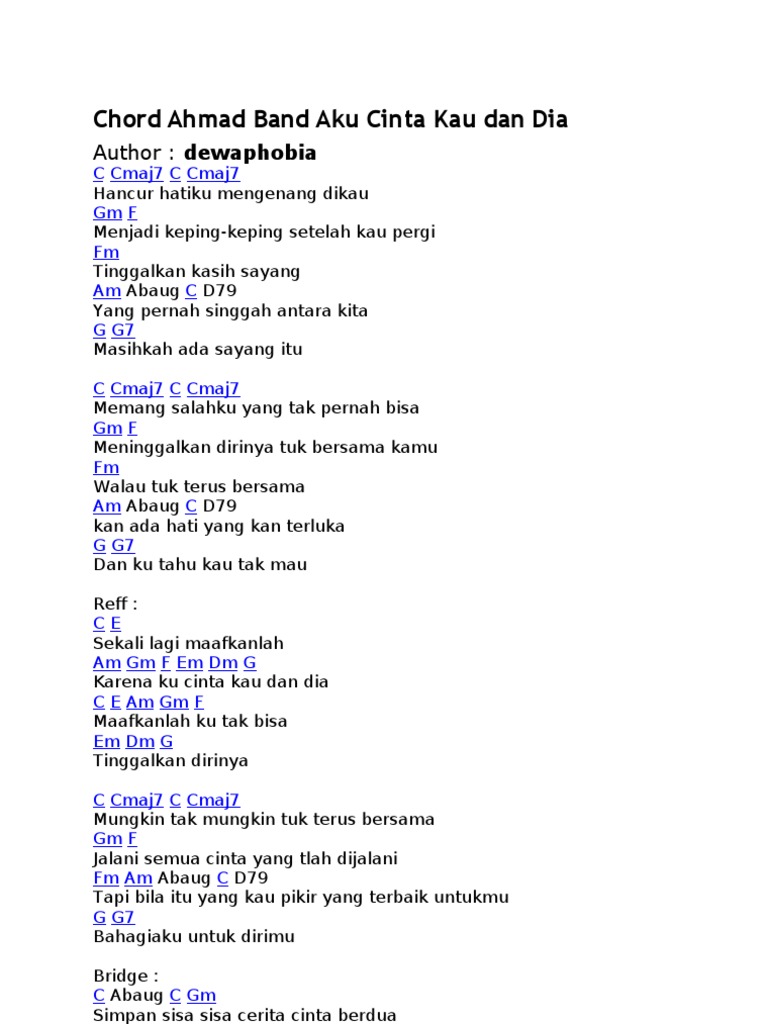 Chord Aku Cinta Kau Dan Dia By Ahmad Dhani Chordlicious