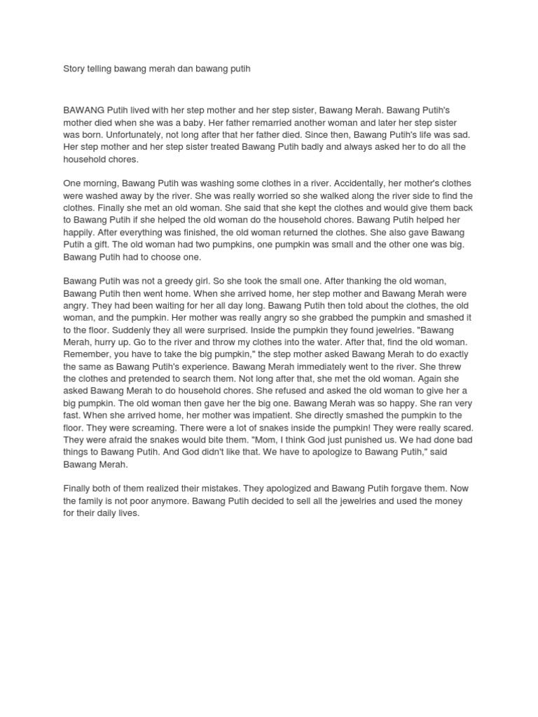 Siswa Nugas An Example Of A Story Telling Text Bawang Merah Bawang Putih
