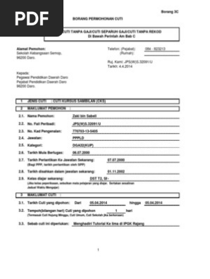 Borang 3c Tanpa Gaji Separuh Gaji Tanpa Rekod Download Pdf