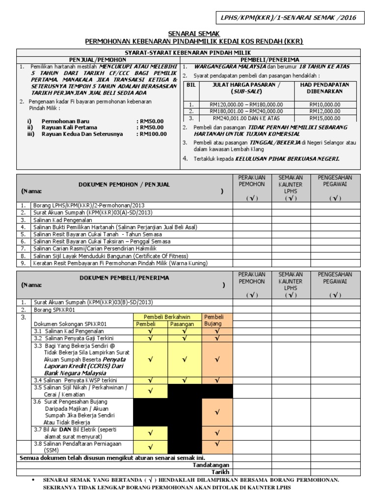 Borang Permohonan Kebenaran Pindahmilik Kedai Kos Rendah Kkr