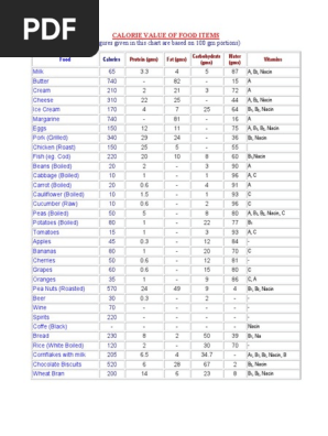 Nutritional Values Of Indian Food Pdf Ftempo Inspiration Food Calorie Chart Calorie Chart Food Calories List