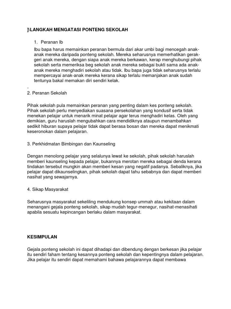 Punca Dan Langkah Menangani Gejala Ponteng Dalam Kalangan Pelajar
