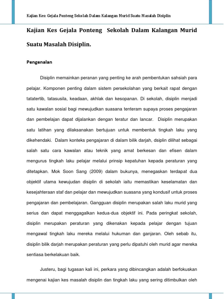 86553304 Kajian Kes Gejala Ponteng Sekolah Dalam Kalangan Murid Suatu Masalah Disiplin