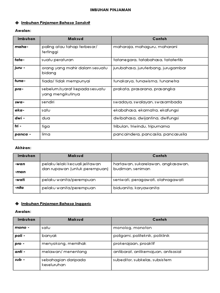 Imbuhan Pinjaman Dalam Bahasa Melayu Terdiri Daripada Imbuhan Awalan Dan Akhiran