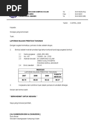 Borang Laporan Penilaian Prestasi Khas Download Google Cookkeen