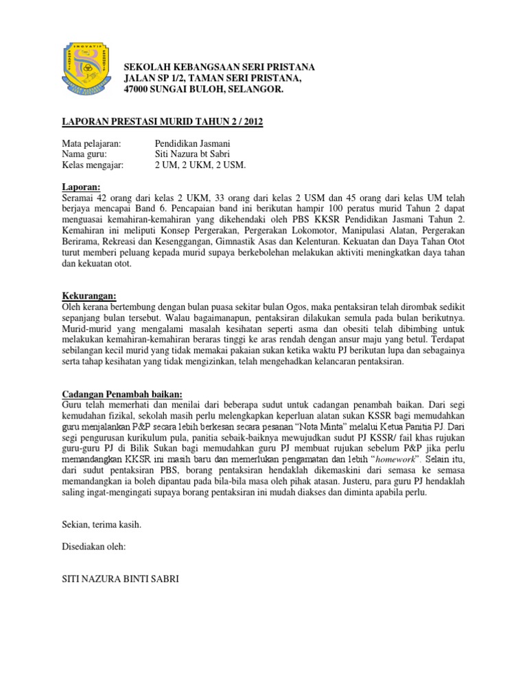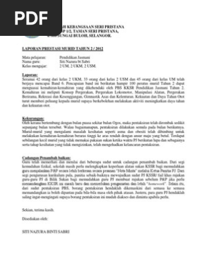 Contoh Laporan Prestasi Murid Kssr Pj Thn 2