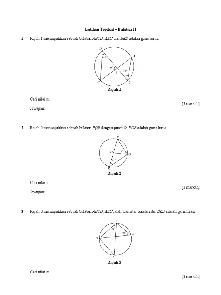 Contoh Soalan Matematik Tingkatan 2 Bulatan