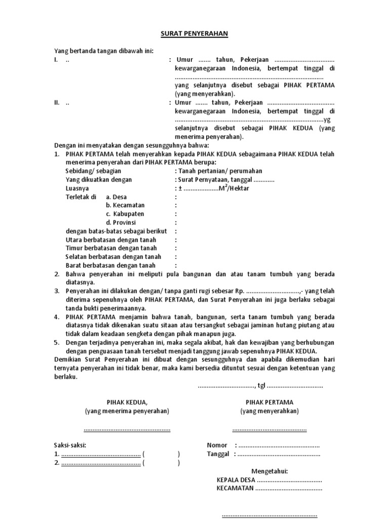 Surat Pernyataan Penyerahan
