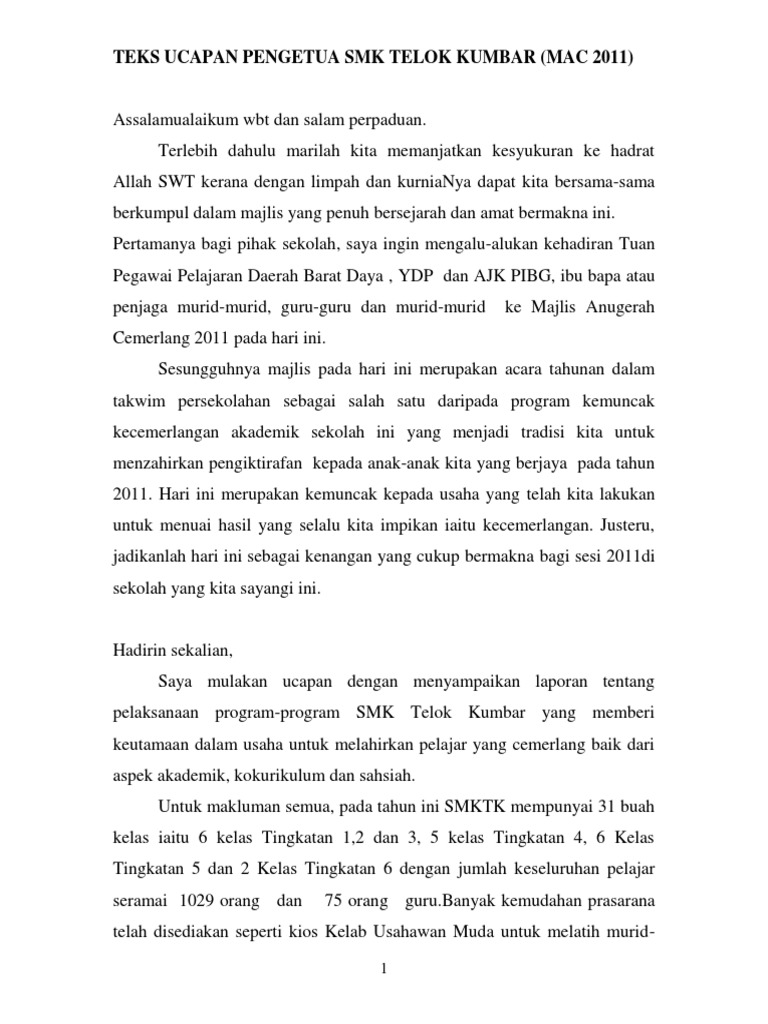 Teks Ucapan Pengetua Mac 2011