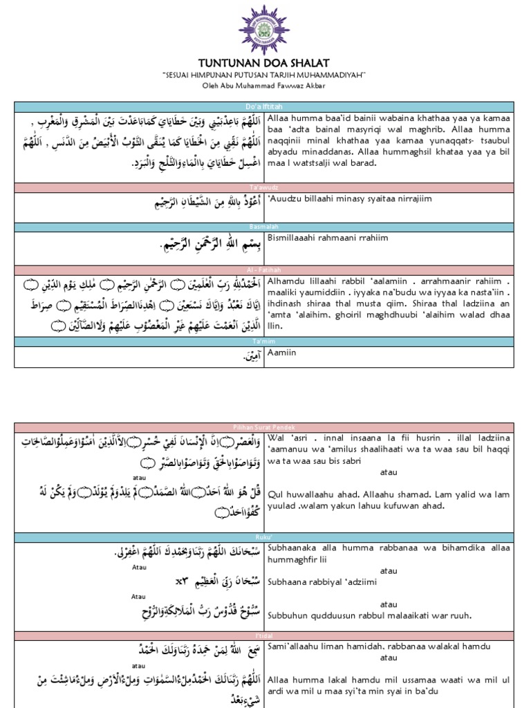 Tuntunan Doa Shalat Sesuai Tarjih Muhammadiyah Salat Islamic Texts