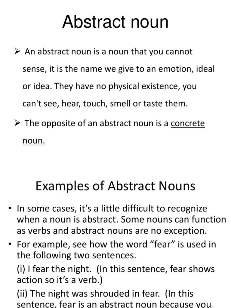 Abstract Noun Examples In Sentences Abstract Nouns And Example Sentences English Grammar Here