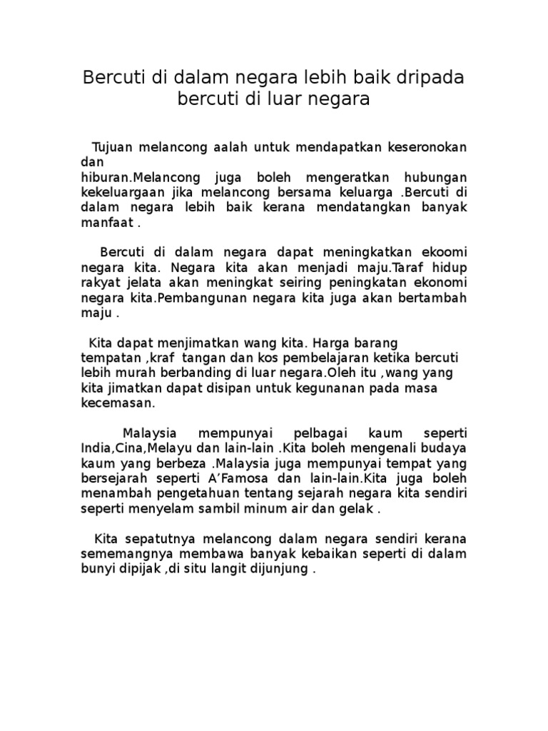Faedah Kepentingan Kelebihan Melancong Dalam Negara Karangan Pelajar Stpm