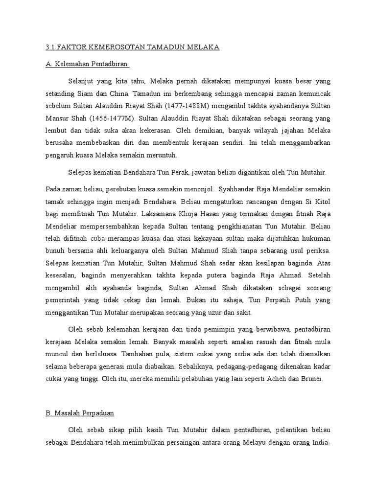 Isi Kandungan Mukasurat 1 Pendahuluan 2 2 Faktor Faktor Yang Menyumbang Kejatuhan Kesultanan Melaka 3 Hingga 6 3 Pengajaran Daripada Daripada Kejatuhan Melaka 7 Hingga 8 Chell Mn Academia Edu
