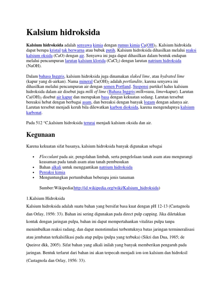 Kegunaan Kalsium Hidroksida