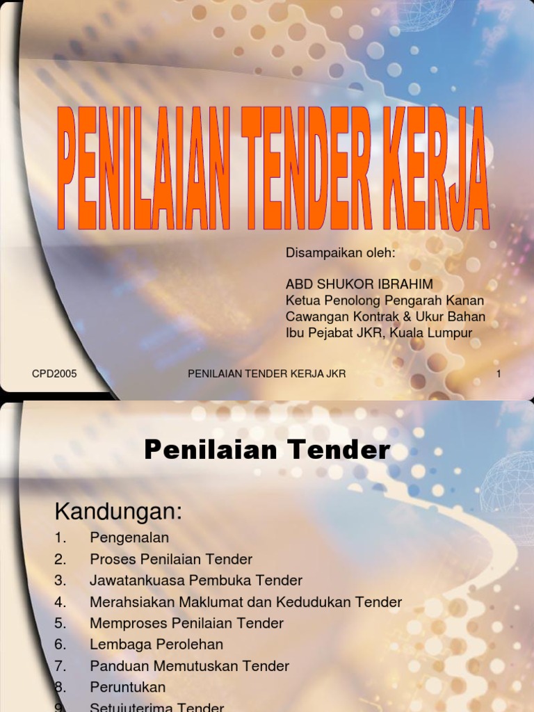 Panduan Penilaian Tender Kerja Jkr 2 Pdf Document