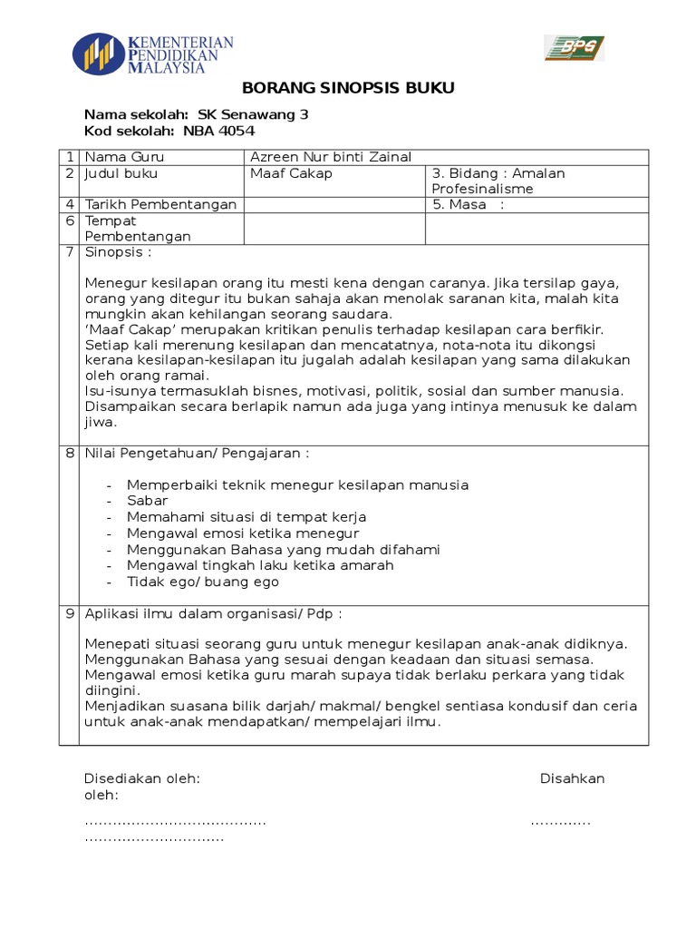 Borang Sinopsis Buku