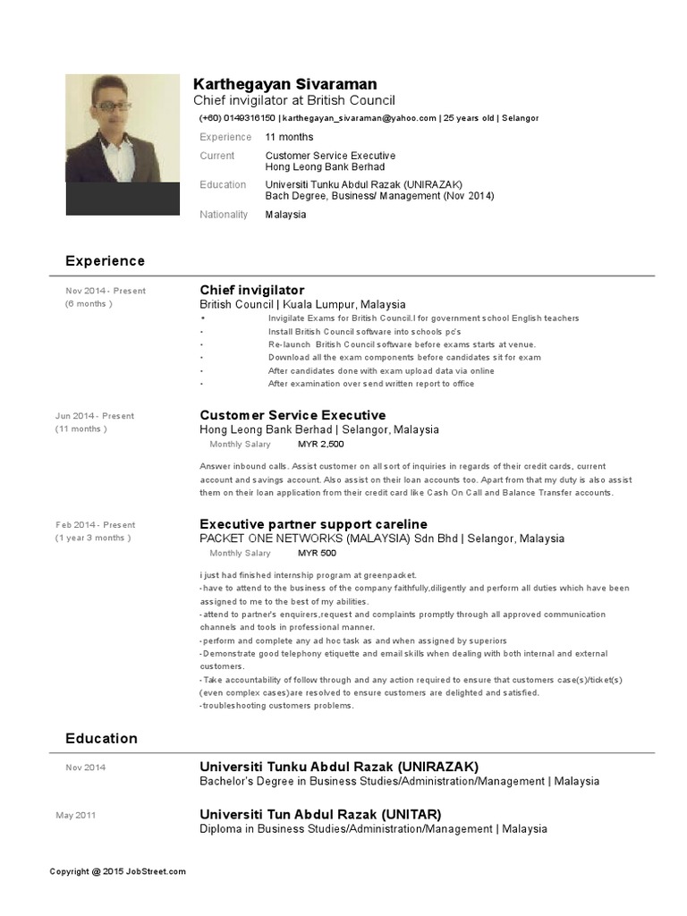 Jobstreet Resume Rtf Bachelor S Degree Malaysia
