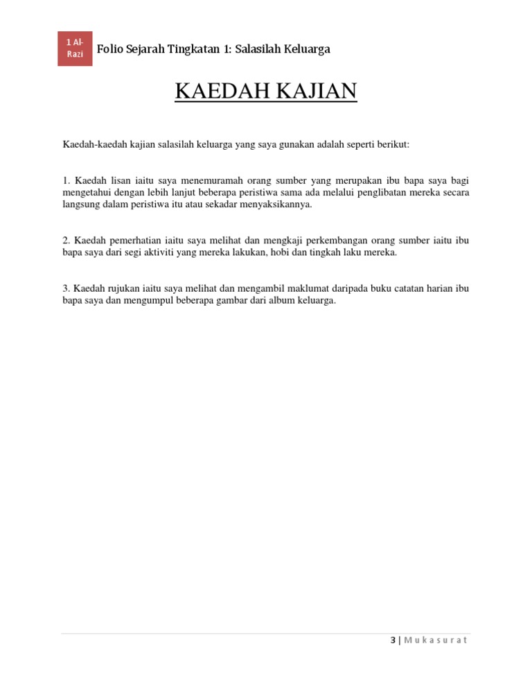 Kaedah Kajian Folio Sejarah Tingkatan 1 Salasilah Keluarga