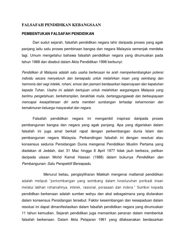 Doc Pelaksanaan Falsafah Pendidikan Kebangsaan Mamat Jusoh Academia Edu