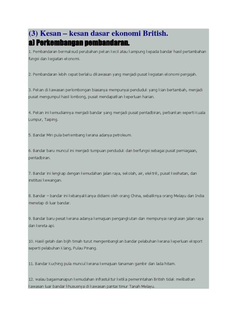 Dasar British Dan Kesannya Terhadap Ekonomi Negara