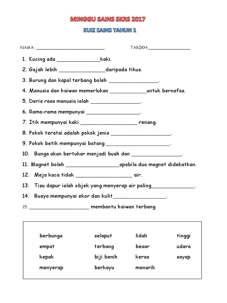 Soalan Latihan Sains Tahun 1 Penting Soalan Kuiz Sains Tahun 1 Brad Erva Doce Info Skoloh