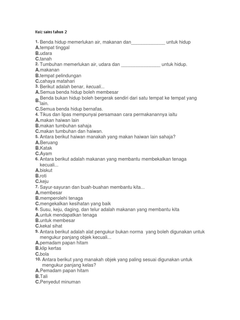 Himpunan Terbesar Kuiz Sains Tahun 2 Yang Baik Dan Boleh Di Muat Turun Dengan Mudah Contoh Resume Cover Letter Curriculum Vitae Terbaik