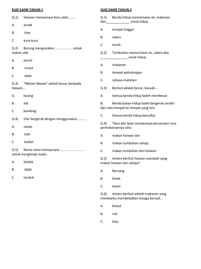 Senarai Terbesar Kuiz Sains Tahun 2 Yang Bermanfaat Dan Boleh Di Lihat Dengan Segera Pekeliling Terbaru Kerajaan