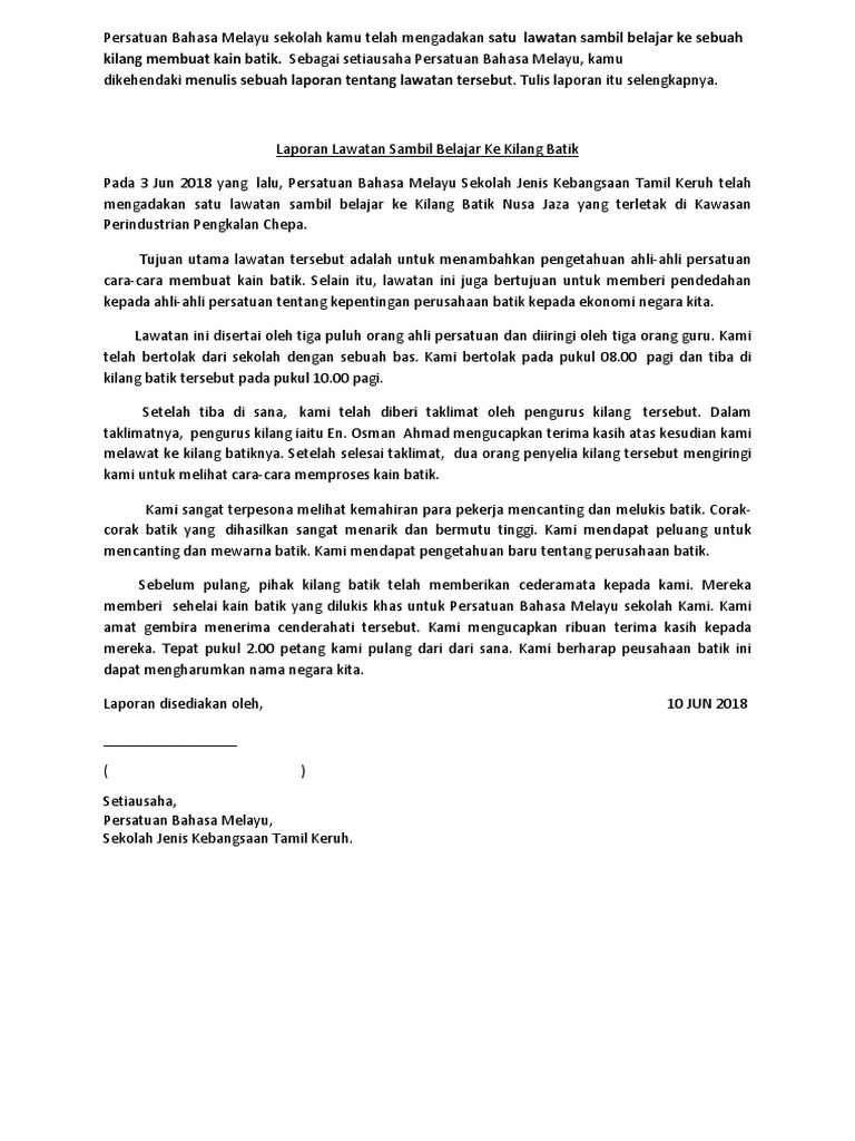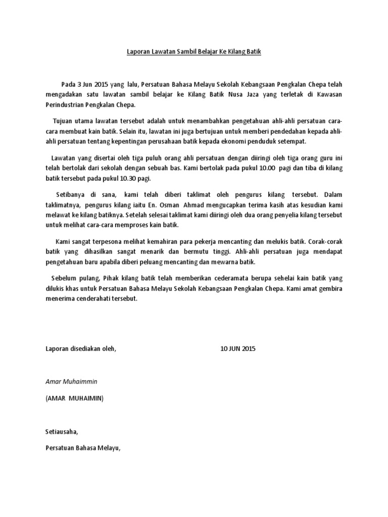Laporan Lawatan Sambil Belajar Ke Kilang Batik Docx Laporan Lawatan Sambil Belajar Ke Kilang Batik Pada 3 Jun 2019 Yang Lalu Persatuan Bahasa Melayu Course Hero