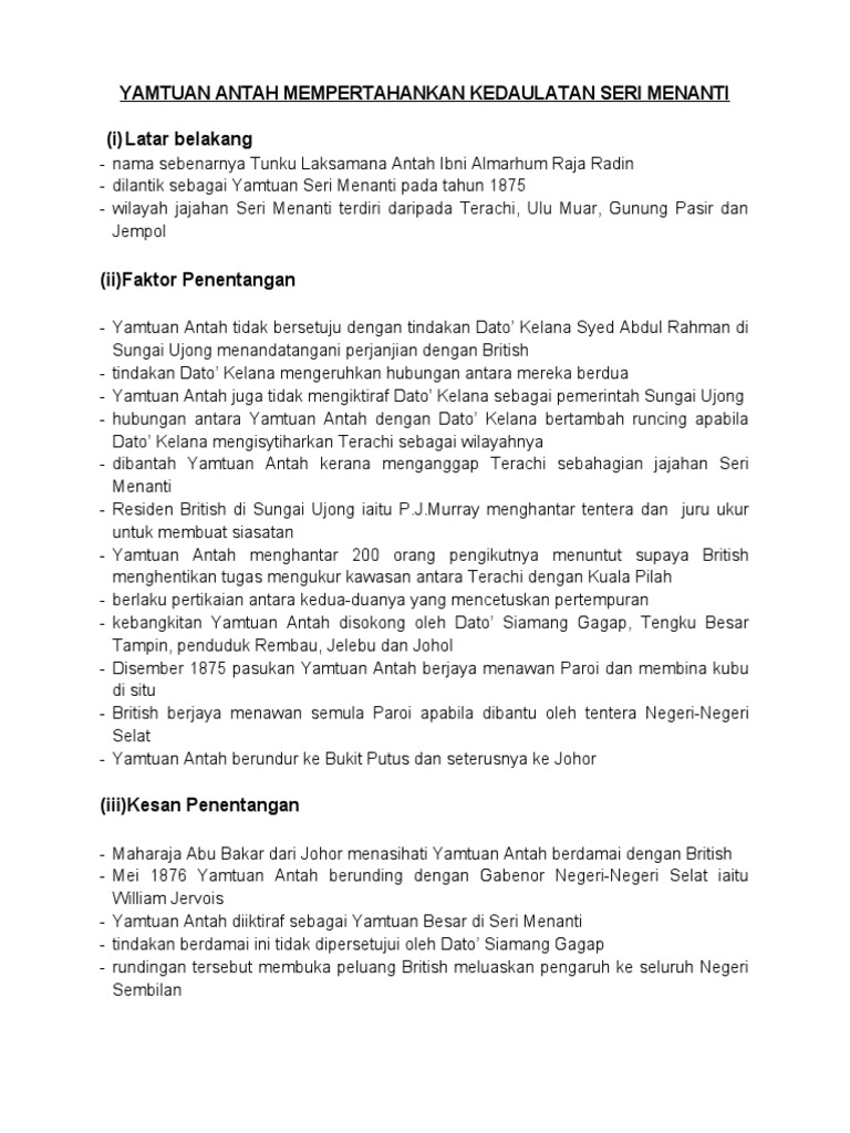 Perjuangan Yamtuan Antah Pptx 6 0 Tindak Balas Masyarakat Tempatan Terhadap Penjajah 6 6 Perjuangan Yamtuan Antah 1812 1888 Cheong Kim Yap Shau Yhong Course Hero