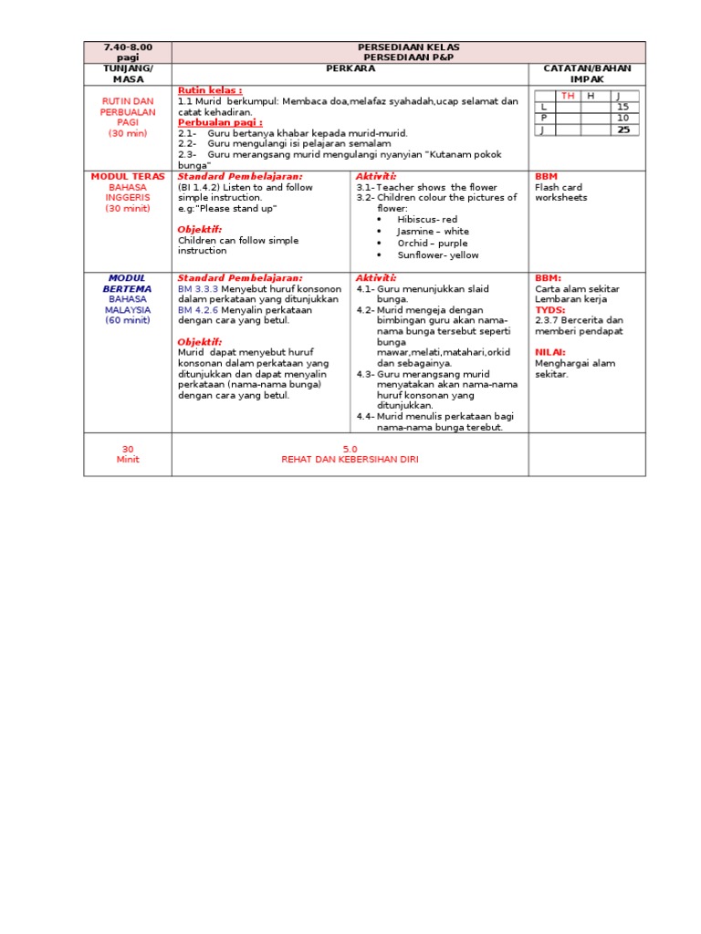 Lembaran Kerja Bahasa Melayu Prasekolah Tema Bunga Inspirasi Dekorasi Rumah