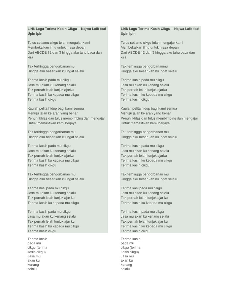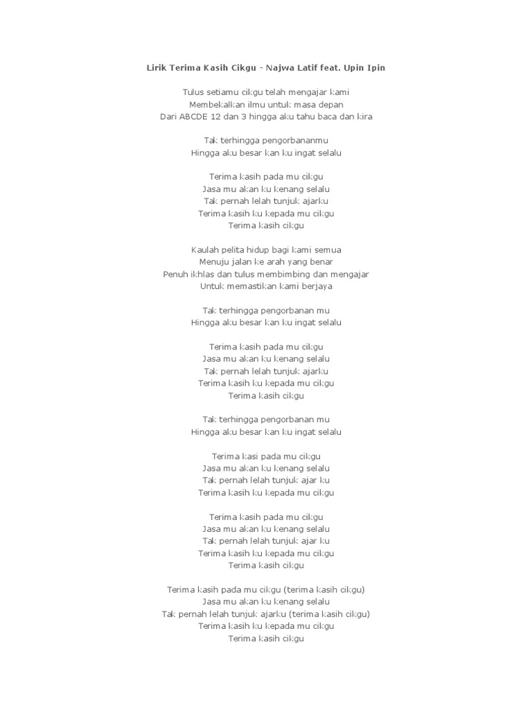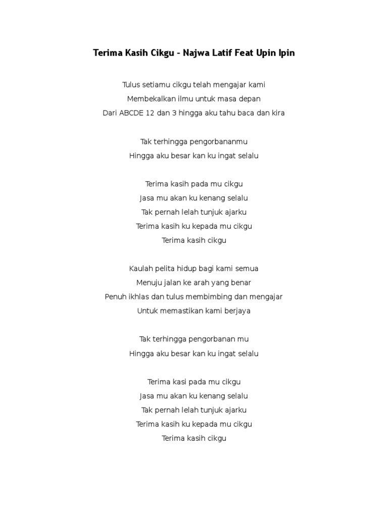 My Copy Stop Lirik Lagu Terima Kasih Cikgu Najwa Latif Feat Upin Ipin