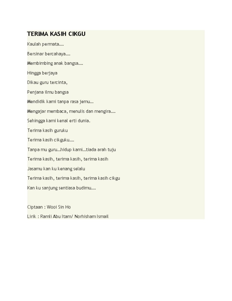 Lirik Lagu Terima Kasih Guruku Docx