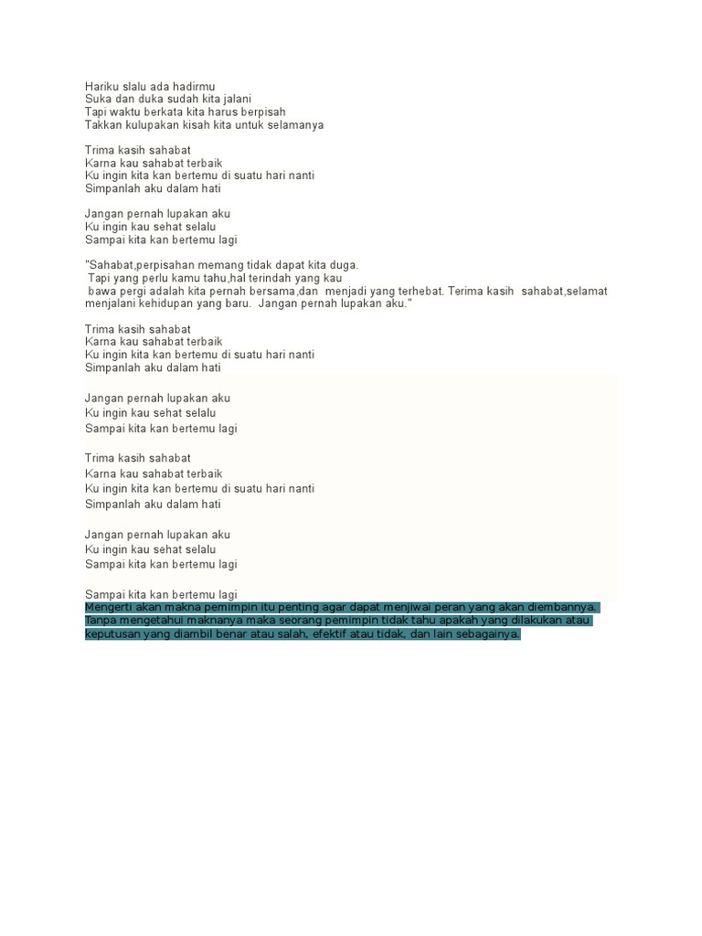 Lirik Lagu Terimakasih Sahabat Aldi Maldini Wattpad