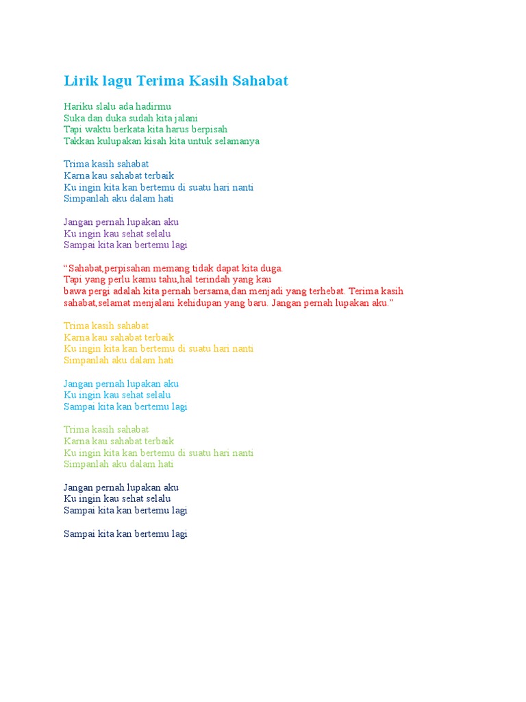 Terima Kasih Sahabat Lagu Lirik Youtube