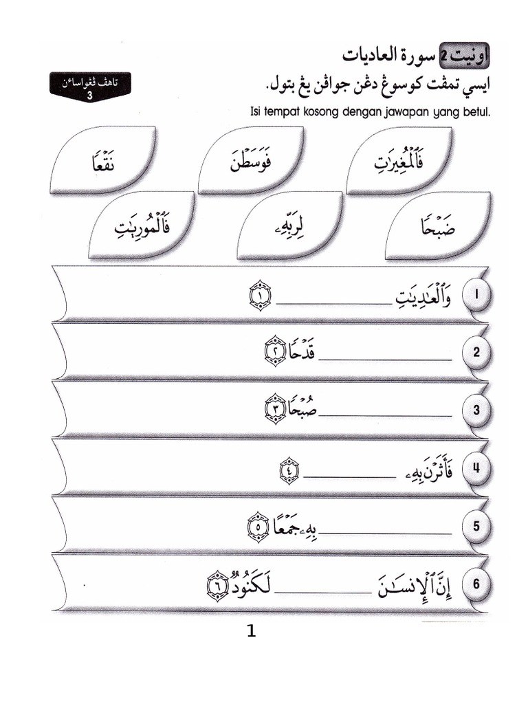 Latihan Hafazan Surah Tahun 4 At Takathur Worksheet