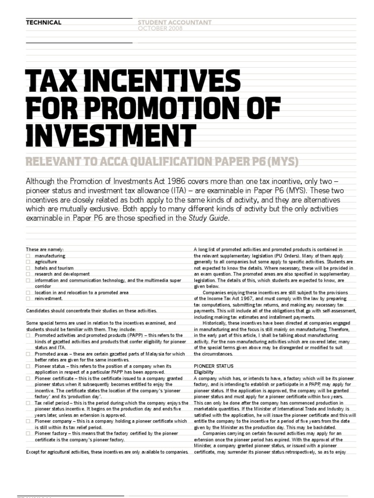 Promotion Of Investment Act 1986 Pdf Laws Of Malaysia Reprint Act 327 Promotion Of Investments Act 1986 Incorporating All Amendments Up To 1 January Course Hero