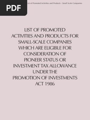 List Of Promoted Activities And Products For Small Scale Companies Which Are Eligible For Consideration Of Pioneer Status Or Investment Tax Allowance Under The Promotion Of Investments Act 1986 Textiles Natural Rubber
