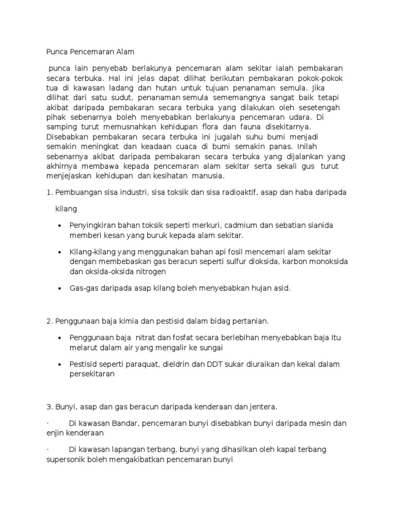 Karangan Fakta Punca Punca Berlakunya Pencemaran Alam Docx