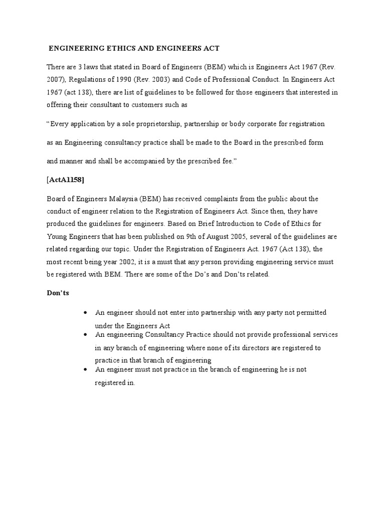 5 Ethics Professionalism Rea Pdf Registration Of Engineers Act 1967 Revised U2013 2002 Act 138 Registration Of Engineers Act 1967 Revised U2013 Course Hero