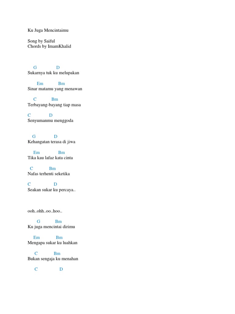 Saiful Ku Juga Mencintaimu Chords Chordify