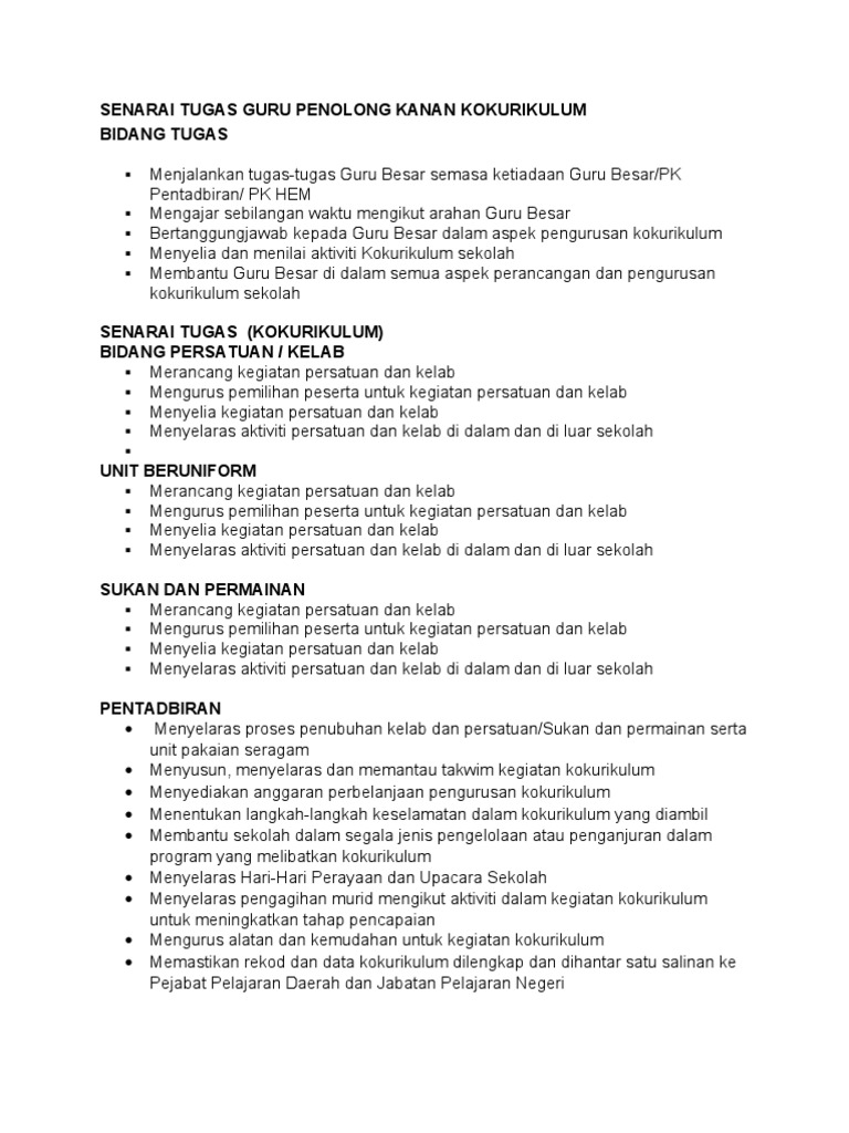 Doc Ii Senarai Tugas Guru Penolong Kanan Kokurikulum Fauziah Idris Academia Edu