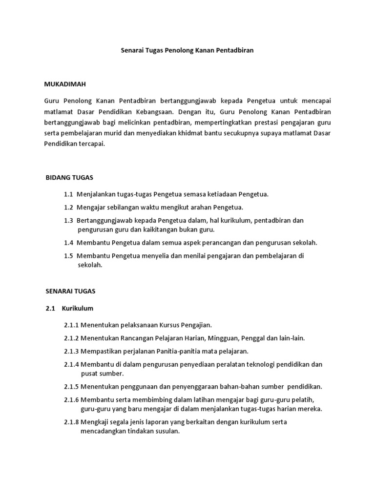 Doc Senarai Tugas Penolong Kanan Kurikulum Khoo Hengchuo Academia Edu