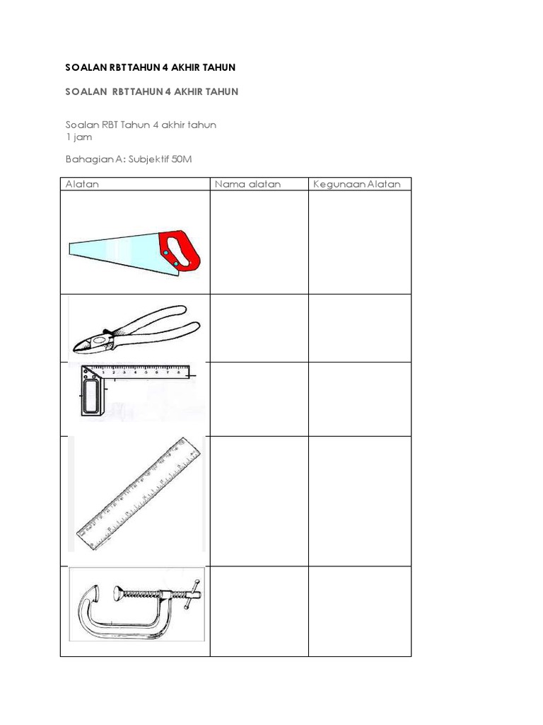 Soalan Rbt Tahun 4 Akhir Tahun
