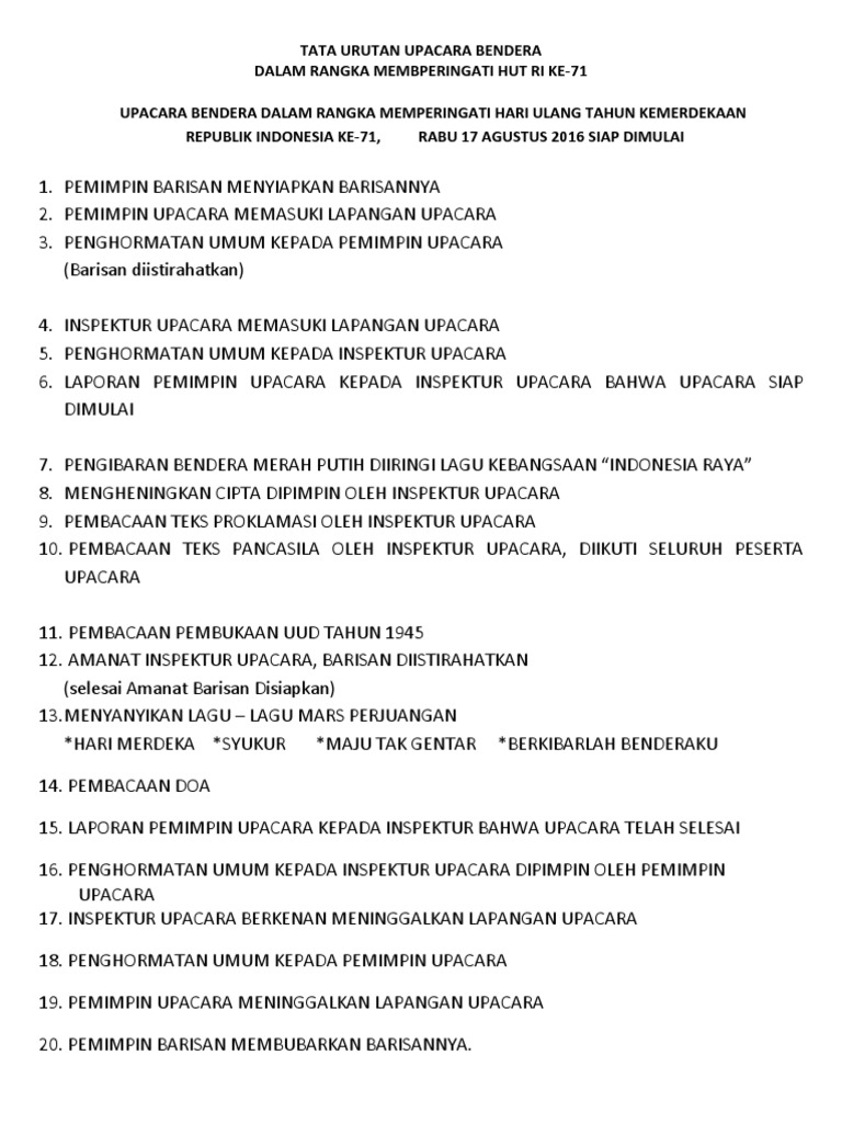 Susunan Upacara Hut Ri 2018