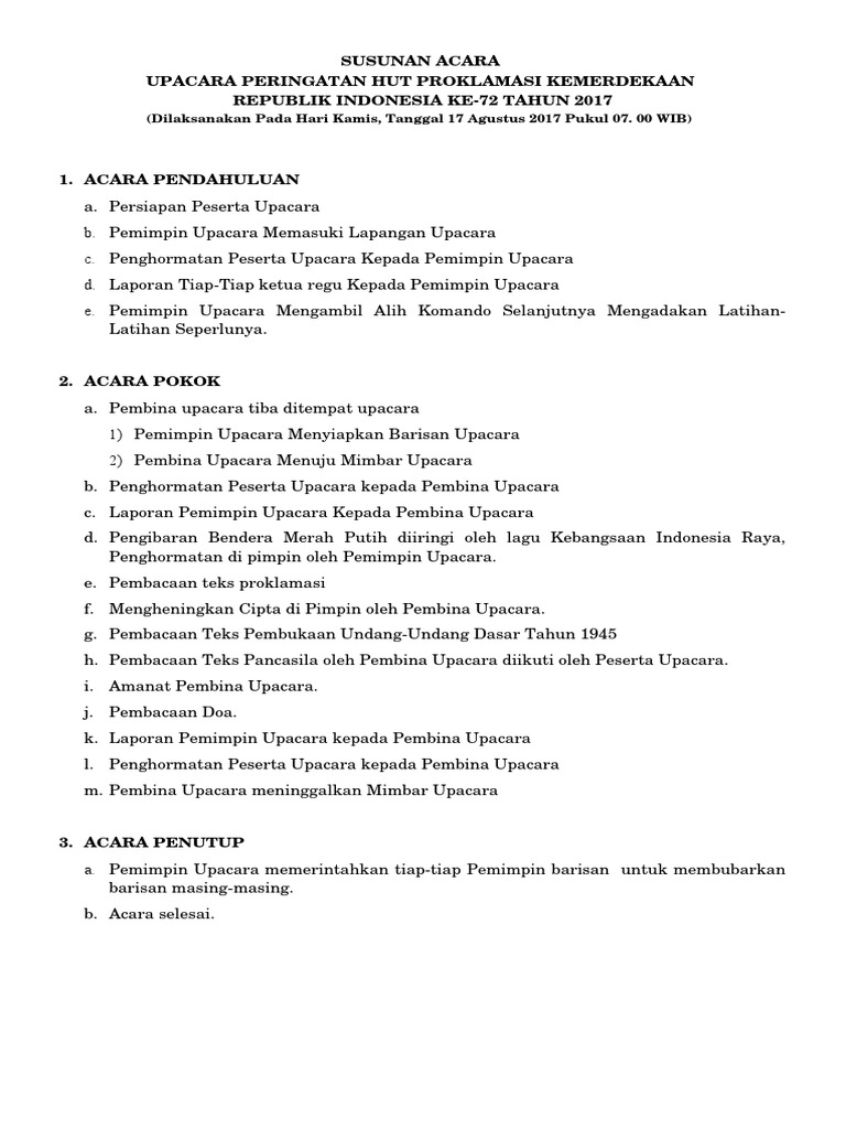 Contoh Susunan Acara 17 Agustus Omndo Com