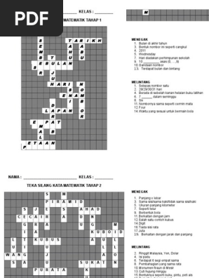 Pelbagai Teka Silang Kata Matematik Tahun 2 Yang Sangat Bermanfaat Untuk Para Guru Muat Turun Skoloh