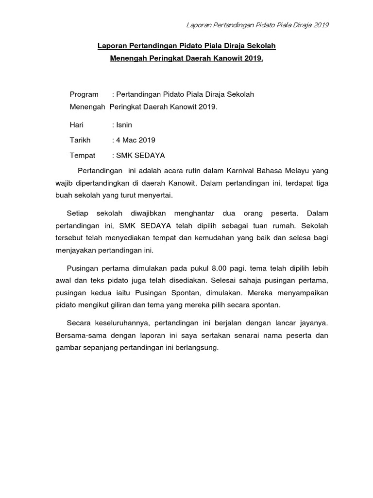 Cadangan Tajuk Pidato Sekolah Rendah Piala Diraja Peringkat Zon Bahagian Sibu 2015 Doc
