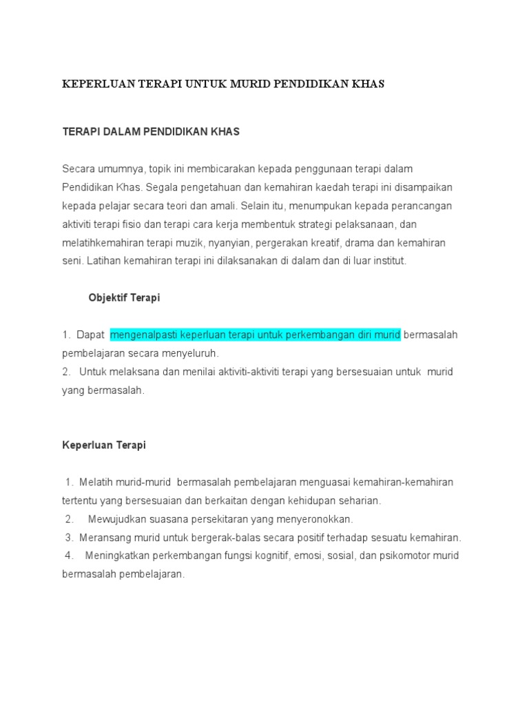 Keperluan Terapi Untuk Murid Pendidikan Khas Docx