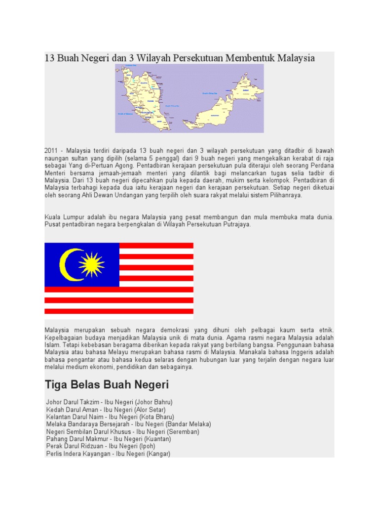 13 Buah Negeri Dan 3 Wilayah Persekutuan Membentuk Malaysia